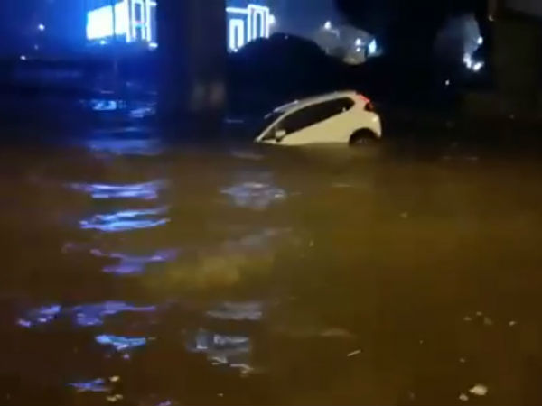 ಮಕ್ಕಳು ಆಟವಾಡುವ ಕಾರನ್ನು ಬಕೆಟ್ ನೊಳಗೆ ನೀರನ್ನು ಹಾಕಿ ಮುಳುಗಿಸುತ್ತಾರಲ್ಲ, ಹಾಗೆ ಆಗಿದೆ ಕಾರಿನ ಸ್ಥಿತಿ. ಕಾರಿನೊಳಗೆ ಸಿಲುಕಿಕೊಂಡ ಮಹಿಳೆಯನ್ನು ಹೇಗೆ ಮಳೆ ನೀರು ಮುಳುಗಿಸಿದೆ ಎಂಬ ದೃಶ್ಯಾವಳಿಗಳು ಅದರಲ್ಲಿದೆ.