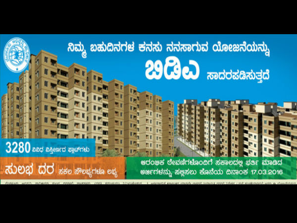 ಬೆಂಗಳೂರು, ಜನವರಿ 08 : ಬೆಂಗಳೂರು ಅಭಿವೃದ್ಧಿ ಪ್ರಾಧಿಕಾರ (ಬಿಡಿಎ) 3,280 ಮನೆಗಳ ಹಂಚಿಕೆಗೆ ಅರ್ಜಿ ಆಹ್ವಾನಿಸಿದೆ. ಜನವರಿ 13 ರಿಂದ ಬ್ಯಾಂಕ್ಗಳಲ್ಲಿ ಅರ್ಜಿಗಳು ದೊರೆಯಲಿದ್ದು, ಆರಂಭಿಕ ಠೇವಣಿಯೊಂದಿಗೆ ಅರ್ಜಿ ಸಲ್ಲಿಸಲು ಕೊನೆಯ ದಿನಾಂಕ ಮಾರ್ಚ್ 17, 2016.