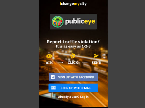 ಒಮ್ಮೆ ಪಬ್ಲಿಕ್ ಐ ಅಪ್ಲಿಕೇಷನ್ ನಿಮ್ಮ ಮೊಬೈಲ್ ನಲ್ಲಿ ಸ್ಥಾಪಿಸಿದ ಬಳಿಕ ಸುಲಭವಾಗಿ ದೂರು ದಾಖಲಿಸಬಹುದು. ಆದರೆ, ಅದಕ್ಕೂ ಮೊದಲು ಇಮೇಲ್ ಬಳಸಿ ಅಥವಾ ಫೇಸ್ ಬುಕ್ ಲಾಗಿನ್ ಬಳಸಿ ಲಾಗಿನ್ ಆಗಬೇಕು. ನಂತರ ಟ್ರಾಫಿಕ್ ಸಂಚಾರ ನಿಯಮ ಉಲ್ಲಂಘನೆಯ ಫೋಟೋ ತೆಗೆದು ಅಪ್ ಲೋಡ್ ಮಾಡಿ