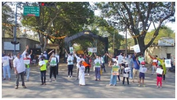 ಬೆಂಗಳೂರು: ಎಚ್ಎಎಲ್ ಜಂಕ್ಷನ್ನಲ್ಲಿ ಮರಗಳನ್ನು ಉಳಿಸಲು ಮಾನವ ಸರಪಳಿ