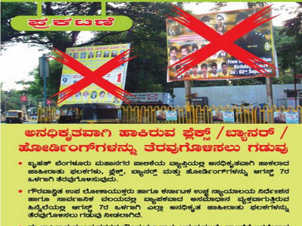 ಬೆಂಗಳೂರಿನಲ್ಲಿ ಫ್ಲೆಕ್ಸ್ ಹಾವಳಿ, ಹೈಕೋರ್ಟ್ ಗರಂ