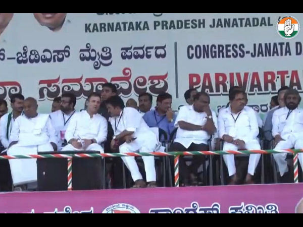 ಬೆಂಗಳೂರು, ಮಾರ್ಚ್ 31: ಕಾಂಗ್ರೆಸ್- ಜೆಡಿಎಸ್ ಪಕ್ಷಗಳು ಜತೆಯಾಗಿ ಲೋಕಸಭಾ ಚುನಾವಣೆ ಎದುರಿಸಲು ಕರ್ನಾಟಕದಲ್ಲಿ ಸಿದ್ಧವಾಗಿರುವುದು ಗೊತ್ತಿರುವ ವಿಚಾರವೇ. ನೆಲಮಂಗಲದ ಬಳಿ ಎರಡೂ ಪಕ್ಷಗಳ ನಾಯಕರ ಸಮಾವೇಶವನ್ನು ಭಾನುವಾರ ಆಯೋಜಿಸಿದ್ದು, ಅತಿರಥ-ಮಹಾರಥ ನಾಯಕರು ಭಾಗವಹಿಸಿದ್ದಾರೆ.