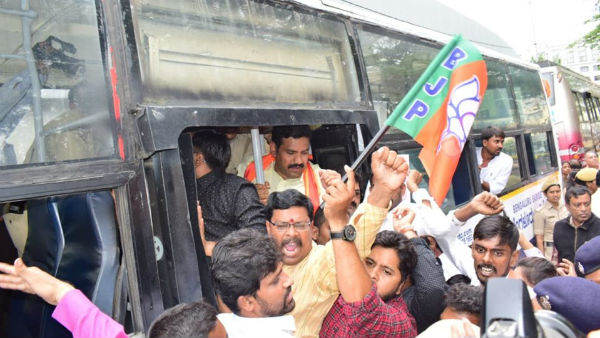 ಮೌರ್ಯ ಸರ್ಕಲ್ ಬಳಿಯಿಂದ ವಿಧಾನಸೌಧಕ್ಕೆ ಮುತ್ತಿಗೆ ಹಾಕಲು ಹೊರಟಿದ್ದ ನಗರದ ಯುವ ಮೋರ್ಚಾ ಪದಾಧಿಕಾರಿಗಳು, ಕಾರ್ಯಕರ್ತರು, ಆರ್. ಅಶೋಕ,ರವಿಕುಮಾರ್, ವಿಜಯೇಂದ್ರ ಮುಂತಾದವರನ್ನು ಪೊಲೀಸರು ವಶಕ್ಕೆ ಪಡೆದುಕೊಂಡರು.
