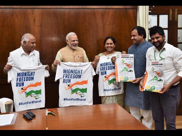 'ಮಿಡ್ ನೈಟ್ ಫ್ರೀಡಂ ರನ್'ನ ಟೀ ಶರ್ಟ್, ಲಾಂಚನವನ್ನು ಪ್ರಧಾನಿ ನರೇಂದ್ರ ಮೋದಿ ಅವರು, ಕಳೆದ ವಾರ ಬಿಡುಗಡೆ ಮಾಡಿದ್ದಾರೆ. ಬಿಜೆಪಿ ಯುವಮೋರ್ಚಾ ಅಧ್ಯಕ್ಷ ಮತ್ತು ಸಂಸದ ಪ್ರತಾಪ್ ಸಿಂಹ, ಬಿಜೆಪಿ ರಾಜ್ಯಾಧ್ಯಕ್ಷ ಬಿ.ಎಸ್.ಯಡಿಯೂರಪ್ಪ ಮುಂತಾದವರು ಈ ಸಂದರ್ಭದಲ್ಲಿ ಉಪಸ್ಥಿತರಿದ್ದರು.