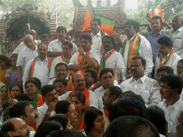 ಪ್ರತಿಭಟನೆಯಲ್ಲಿ ಬೆಂಗಳೂರು ನಗರ ಘಟಕದ ಅಧ್ಯಕ್ಷ ಮುನಿರಾಜು, ಮಹಾನಗರ ಘಟಕದ ಅಧ್ಯಕ್ಷ ಸುಬ್ಬಣ್ಣ, ಶಾಸಕರಾದ ರಘು, ವಿಜಯಕುಮಾರ್, ಸಂಸದ ಪಿ.ಸಿ.ಮೋಹನ್ ಮುಂತಾದವರು ಪಾಲ್ಗೊಂಡಿದ್ದರು. (ಪಾಟ್ನಾ ಸ್ಪೋಟದ ನಂತರ ಗೃಹ ಸಚಿವರು ಹೋಗಿದೆಲ್ಲಿಗೆ)