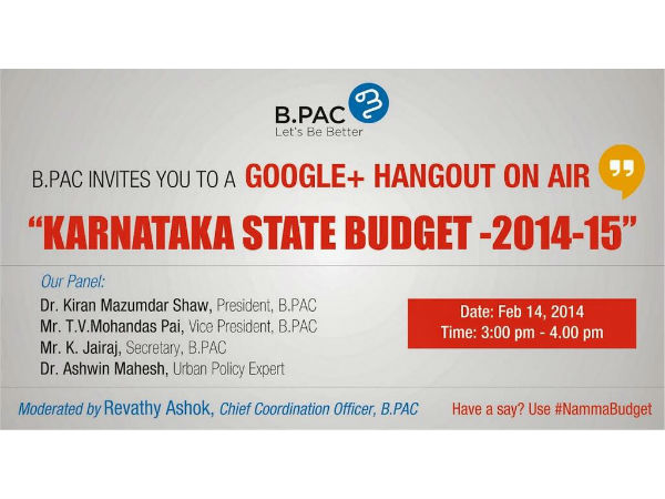 ಕರ್ನಾಟಕ ಬಜೆಟ್ : ಗೂಗಲ್+ನಲ್ಲಿ ಬಿಪ್ಯಾಕ್ ಹ್ಯಾಂಗೌಟ್