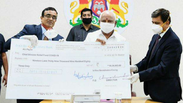 ಈ ಬಗ್ಗೆ ಟ್ವೀಟ್ ಮಾಡಿರುವ ಮುಖ್ಯಮಂತ್ರಿ ಯಡಿಯೂರಪ್ಪ ''ಮುಖ್ಯಮಂತ್ರಿಗಳ ಕೋವಿಡ್ 19 ಪರಿಹಾರ ನಿಧಿಗೆ, ಕಿದ್ವಾಯಿ ಸ್ಮಾರಕ ಗಂಥಿ ಸಂಸ್ಥೆ ಹಾಗೂ ಪೆರಿಫೆರಲ್ ಕ್ಯಾನ್ಸರ್ ಕೇಂದ್ರ, ಕಲಬುರ್ಗಿಯ ನೌಕರರು ತಮ್ಮ ವೇತನದ ಒಂದು ದಿನದ ಮೊತ್ತವಾಗಿರುವ 19,39,983 ರೂ.ಗಳನ್ನು ದೇಣಿಗೆ ನೀಡಿದ್ದು, ಇಂದು ಸಂಸ್ಥೆ ನಿರ್ದೇಶಕ ಡಾII ಸಿ.ರಾಮಚಂದ್ರ ಅವರಿಂದ ಚೆಕ್ ಅನ್ನು ಸ್ವೀಕರಿಸಿದ್ದೇನೆ.'' ಎಂದು ತಿಳಿಸಿದ್ದಾರೆ.