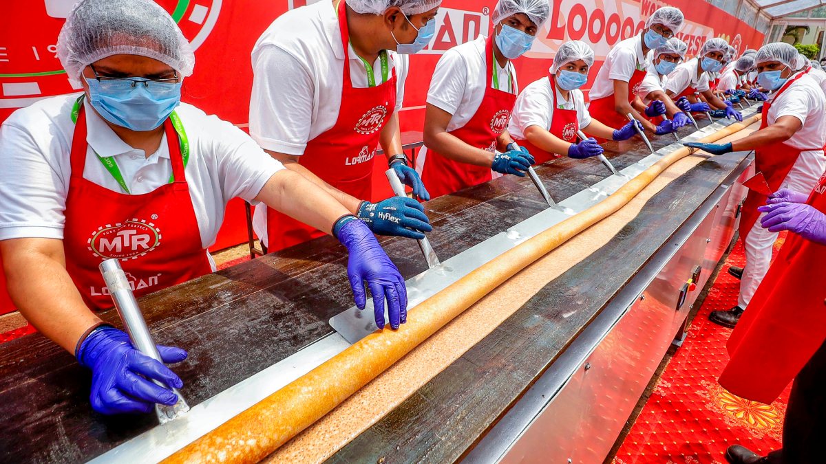 ಎಂಟಿಆರ್ ಪತ್ರಿಕಾ ಪ್ರಕಟಣೆ ಪ್ರಕಾರ, ಎಂಟಿಆರ್ನ ಕ್ಯುಸಿನ್ ಸೆಂಟರ್ ಆಫ್ ಎಕ್ಸಲೆನ್ಸ್ನ ಮಾರ್ಗದರ್ಶನದಲ್ಲಿ ಬೊಮ್ಮಸಂದ್ರದ ಎಂಟಿಆರ್ ಕಾರ್ಖಾನೆಯಲ್ಲಿ ಅನುಭವಿ ತಜ್ಞರು ಮತ್ತು ಉದಯೋನ್ಮುಖ ಪ್ರತಿಭೆಗಳನ್ನು ಒಳಗೊಂಡಿರುವ 75 ಬಾಣಸಿಗರ ತಂಡವು ಈ ದಾಖಲೆಯನ್ನು ಬರೆದಿದೆ. ಈ ಹಿಂದೆ ಲೋರ್ಮನ್ ಕಿಚನ್ ಎಕ್ಯೂಪ್ಮೆಂಟ್ಸ್ ಮತ್ತು ಎಂಟಿಆರ್ 54 ಅಡಿ ಅಳತೆಯ ಉದ್ದನೆಯ ದೋಸೆ ತಯಾರಿಸಿ ಹಿಂದಿನ ವಿಶ್ವ ದಾಖಲೆಯನ್ನು ಮುರಿದಿದ್ದಾರೆ.