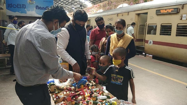 ನೈಋತ್ಯ ರೈಲ್ವೆಯ ಬೆಂಗಳೂರು ವಲಯ ಶ್ರಮಿಕ್ ರೈಲಿನಲ್ಲಿ ವಾಪಸ್ ಆಗುತ್ತಿರುವ ಮಕ್ಕಳಿಗೆ ಚನ್ನಪಟ್ಟಣದ ಗೊಂಬೆಗಳನ್ನು ಉಡುಗೊರೆಯಾಗಿ ನೀಡುತ್ತಿದೆ. ಮೇ 19ರಂದು 700 ಗೊಂಬೆಗಳನ್ನು ಮಕ್ಕಳಿಗೆ ವಿತರಣೆ ಮಾಡಲಾಗಿದೆ.