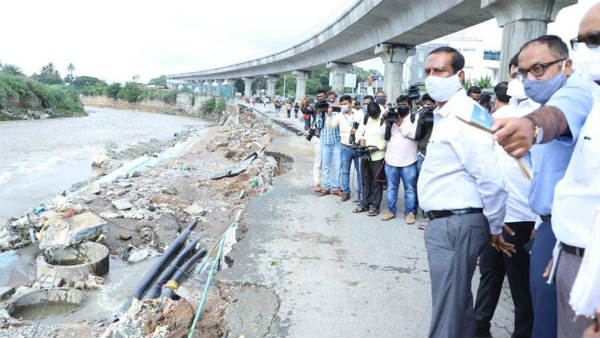 ಚಿತ್ರ; ವೃಷಭಾವತಿಯಲ್ಲಿ ಕೊಚ್ಚಿ ಹೋದ ರಸ್ತೆ, ಮೇಯರ್ ಭೇಟಿ