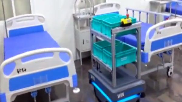ಕೊರೊನಾ ಸೋಂಕಿತರಿಗೆ ಆಹಾರ ಮತ್ತು ಔಷಧ ನೀಡುವಾಗ ಆಸ್ಪತ್ರೆಯ ಸಿಬ್ಬಂದಿಗೆ ಸೋಂಕು ತಗುಲದಂತೆ ಎಚ್ಚರಿಕೆ ವಹಿಸಲು ರೋಬೋಟ್ ವ್ಯವಸ್ಥೆ ಮಾಡಲಾಗಿದೆ.