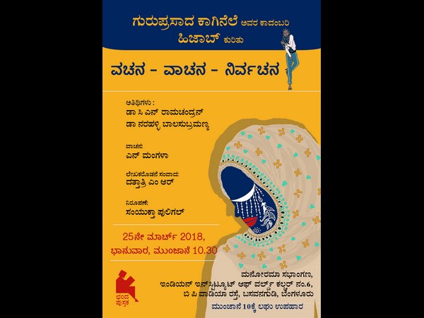 ಬೆಂಗಳೂರು, ಮಾರ್ಚ್ 21: ಲೇಖಕ, ವೈದ್ಯರು ಆಗಿರುವ ಗುರುಪ್ರಸಾದ್ ಕಾಗಿನೆಲೆಯವರ 'ಹಿಜಾಬ್' ಕಾದಂಬರಿ ಆಧಾರಿತ ಸಂವಾದ ಕಾರ್ಯಕ್ರಮವು ಮಾ.25ಕ್ಕೆ ಬಸವನಗುಡಿಯ ಇಂಡಿಯನ್ ಇನ್ಸ್ಟಿಟ್ಯೂಟ್ ಆಫ್ ವರ್ಲ್ಡ್ ಕಲ್ಚರ್ ನಲ್ಲಿ ನಡೆಯಲಿದೆ.