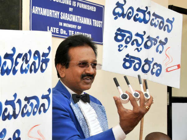 ಜಾದೂಗಾರ ಎಸ್.ಪಿ.ನಾಗೇಂದ್ರ ಪ್ರಸಾದ್ ಮ್ಯಾಜಿಕ್ ಮಾಡುವ ಮೂಲಕ ಮಕ್ಕಳಿಗೆ ತಂಬಾಕ ಉತ್ಪನ್ನಗಳಿಂದ ದೂರವಿರುವಂತೆ ಸಂದೇಶ ಸಾರಿದರು.