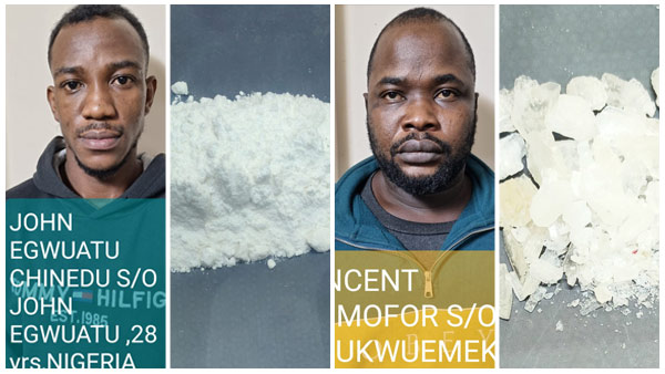ನೈಜೀರಿಯಾ ಮೂಲದ ಜಾನ್ ಇಗ್ವಾತೂ ಚಿನೆಡು, ವಿನ್ಸೆಂಟ್ ಇಜಿಮೋ ಬಂಧಿತ ಆರೊಪಿಗಳು. ಇವರಿಂಧ ಸುಮಾರು ಹದಿನೈದು ಲಕ್ಷ ರೂ. ಮೌಲ್ಯದ ಕೊಕೈನ್ ಮತ್ತು ಎಕ್ಸೆಟೆಸಿ ಪಿಲ್ಸ್ ವಶಪಡಿಸಿಕೊಂಡಿದ್ದಾರೆ.