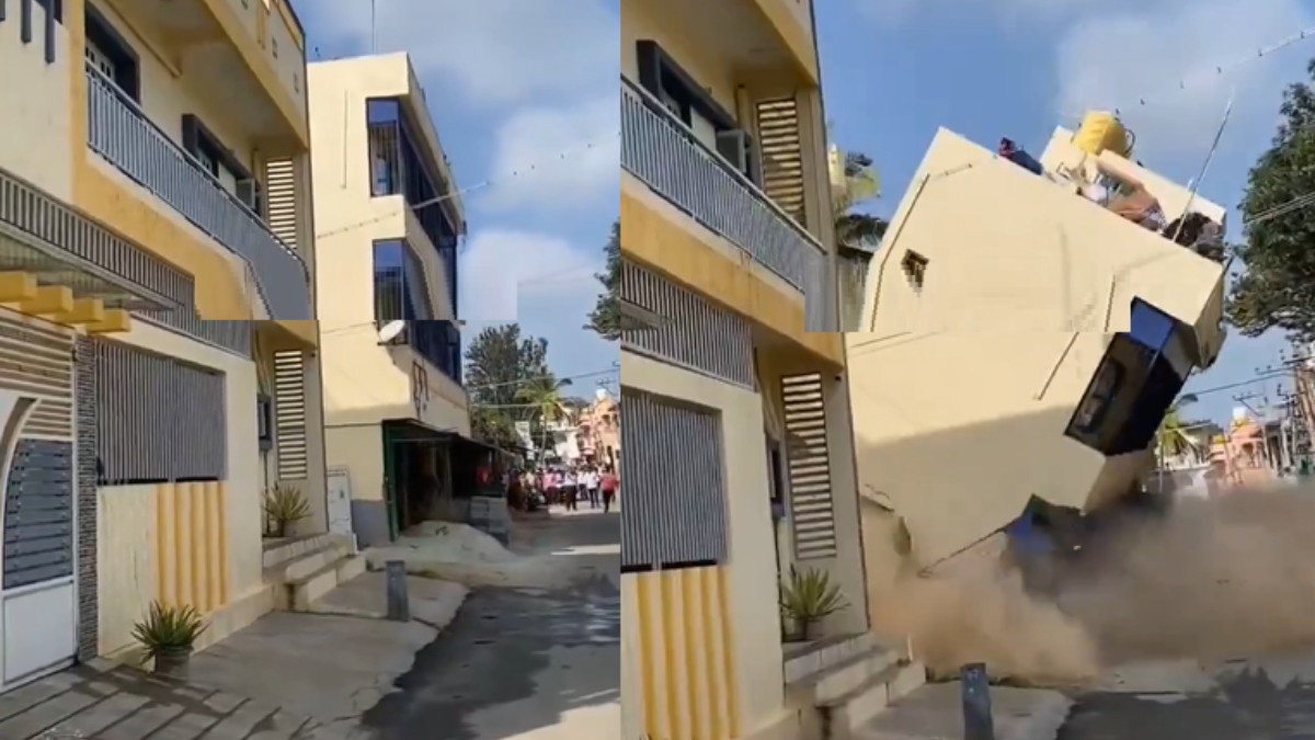 ಈ ವಿಡಿಯೋ ಸಾಮಾಜಿಕ ಜಾಲತಾಣಗಳ ವಿವಿಧ ವೇದಿಕೆಗಳಲ್ಲಿ ವೈರಲ್ ಆಗುತ್ತಿದೆ. ಈ ಕ್ಲಿಪ್ ಅನ್ನು ಎಕ್ಸ್ ಹ್ಯಾಂಡಲ್ @karnatakaportf ಪೋಸ್ಟ್ ಮಾಡಿದೆ. ಈ 12 ಸೆಕೆಂಡುಗಳ ವೀಡಿಯೊದಲ್ಲಿ, ಕಟ್ಟಡ ಇದ್ದಕ್ಕಿದ್ದಂತೆ ಕುಸಿದು ನೆಲಕ್ಕಚ್ಚಿದೆ. ಈ ವೇಳೆ ಅಲ್ಲಿದ್ದವರು ಘಟನೆಯ ವಿಡಿಯೋ ಮಾಡಿದ್ದಾರೆ.