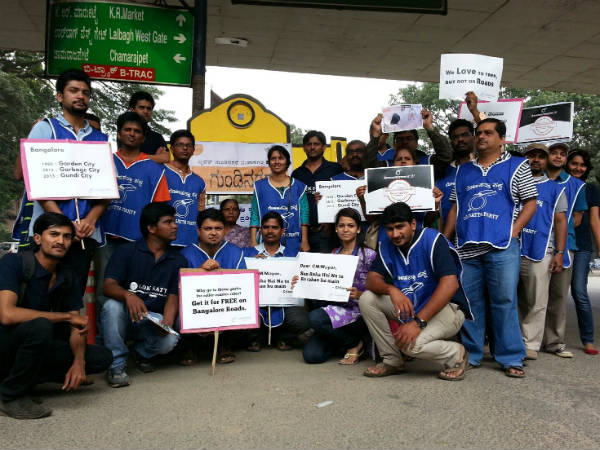 "ಬೆಂದಕಾಳೂರಿನ ರಸ್ತೆಗಳ ಮೇಲೆ ವಾಹನ, ಬೆನ್ನು ನೋವು, ಅಪಘಾತಗಳಿಗೆ ಆಹ್ವಾನ", "ಎಲ್ಲಿಗೆ ಪಯಣ ಯಾವುದೋ ದಾರಿ, ಪಾಪ ಸಂಚಾರಿ :-(", "ನೀ ಮಾಯೆಯೊಳಗೋ ನಿನ್ನೊಳು ಮಾಯೆಯೋ, ರಸ್ತೆಯೊಳು ಗುಂಡಿಯೋ ಗುಂಡಿಯೊಳು ರಸ್ತೆಯೋ", "We love to trek, but not on road" ಮುಂತಾದ ಫಲಕಗಳನ್ನು ಹಿಡಿದುಕೊಂಡಿದ್ದ ಉತ್ಸಾಹಿ ಯುವಕರು ರಸ್ತೆ ದುರಸ್ತಿ ಮಾಡದ ಬಿಬಿಎಂಪಿಗೆ ತಮ್ಮದೇ ಸ್ಟೈಲಿನಲ್ಲಿ ಛೀಮಾರಿ ಹಾಕಿದರು.