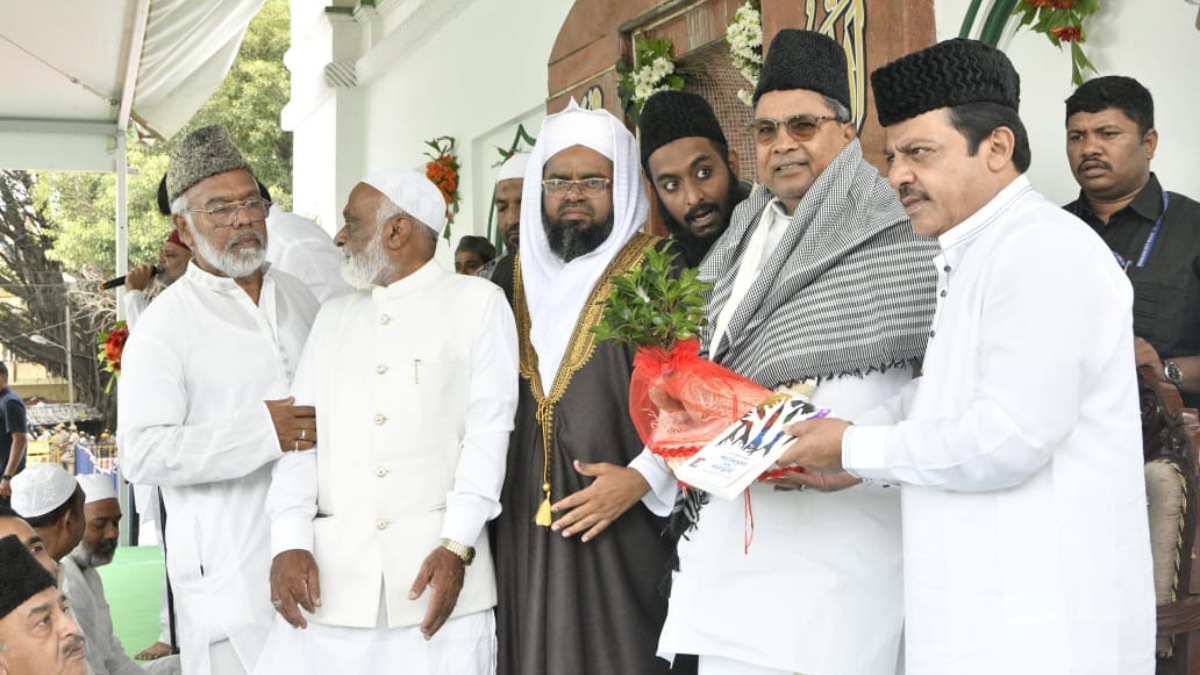 ಮುಸ್ಲಿಂ ಧರ್ಮಗುರುಗಳು ಸಿಎಂ ಸಿದ್ದರಾಮಯ್ಯ ಅವರನ್ನು ಸಂಪ್ರದಾಯದಂತೆ ಟೋಪಿ ಹಾಕುವ ಮೂಲಕ ಬರಮಾಡಿಕೊಂಡರು. ಸಚಿವ ಜಮೀರ್ ಅಹಮದ್ ಖಾನ್ ಸಿದ್ದರಾಮಯ್ಯ ಅವರಿಗೆ ಪುಸ್ತಕ ನೀಡಿದರು. ಸಾವಿರಾರು ಮುಸ್ಲಿಮರು ಭಾಗವಹಿಸಿ, ಪ್ರಾರ್ಥನೆ ಸಲ್ಲಿಸಿದರು.