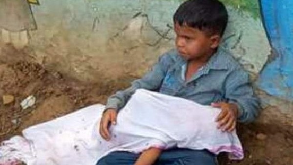 ತಮ್ಮನ ಶವದ ಜೊತೆ ರಸ್ತೆ ಬದಿಯಲ್ಲಿ ಕುಳಿತು ಅಪ್ಪನ ಆಗಮನಕ್ಕೆ ಕಾಯುತ್ತಿರುವ 8 ವರ್ಷದ ಬಾಲಕ