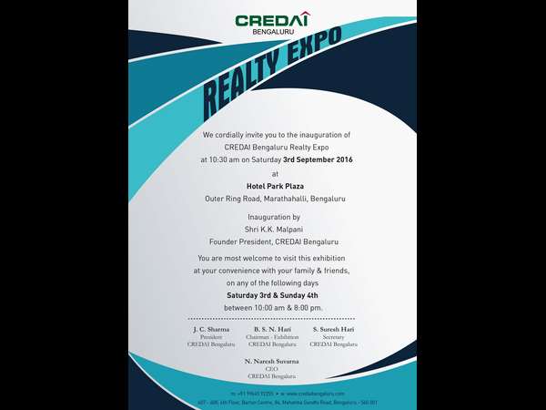 ಬೆಂಗಳೂರು, ಆಗಸ್ಟ್ 31, 2016: ಬೆಂಗಳೂರು ನಗರದ ನಾಗರಿಕರಿಗೆ ಕನಸಿನ ಸೂರು ಕಟ್ಟಿಕೊಳ್ಳುವ ಸುವರ್ಣಾವಕಾಶ ಮತ್ತೊಮ್ಮೆ ಒದಗಿ ಬಂದಿದೆ. ಕ್ರೆಡಾಯ್ ಬೆಂಗಳೂರು ಘಟಕ (ರಿಯಲ್ ಎಸ್ಟೇಟ್ ಡೆವಲಪರ್ಸ್ ಅಸೋಸಿಯೇಷನ್ ಆಫ್ ಇಂಡಿಯಾ) ಸೆಪ್ಟೆಂಬರ್ 3 ಮತ್ತು 4 ರಂದು 5 ನೇ ರಿಯಾಲಿಟಿ ಎಕ್ಸ್ ಪೋ ಅನ್ನು ಆಯೋಜಿಸಿದೆ.