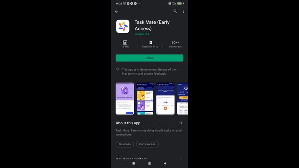 ಗೂಗಲ್ನ ಟಾಸ್ಕ್ ಮೇಟ್ ಆ್ಯಪ್ ನಿಮಗೆ ಗೂಗಲ್ ಪ್ಲೇ ಸ್ಟೋರ್ನಲ್ಲಿ ಲಭ್ಯವಿದೆ. ಆದರೂ ಈ ಅಪ್ಲಿಕೇಶನ್ ಬಳಸಲು ಮುನ್ನ ಹೊಸ ಬಳಕೆದಾರರಿಗೆ ಉಲ್ಲೇಖಿತ ಕೋಡ್ಗಳ ಮೂಲಕ ಮಾತ್ರ ಸೇರಲು ಸಾಧ್ಯವಾಗುತ್ತದೆ.
