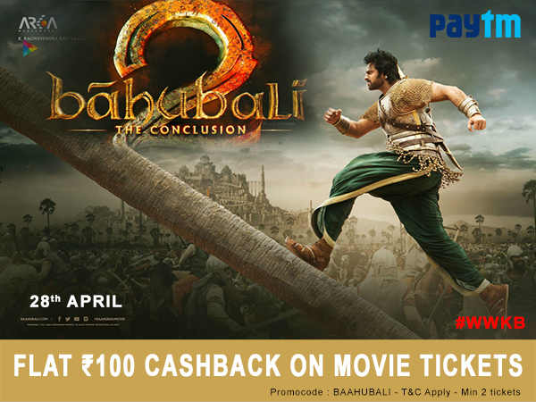 ಬಾಹುಬಲಿ ಸಿನಿಮಾ ಟಿಕೆಟ್ ಗಳ ಮೇಲೆ ರೂ. 100 ಕ್ಯಾಶ್ ಬ್ಯಾಕ್