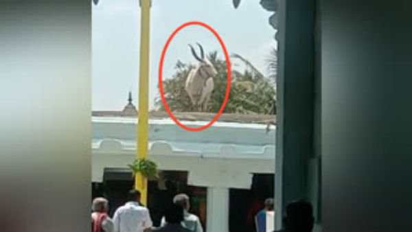 ಸೋಮವಾರ ನಡೆಯಬೇಕಿದ್ದ ದಿವ್ಯಲಿಂಗೇಶ್ವರ ಜಾತ್ರಾ ಮಹೋತ್ಸವವನ್ನು ಕೊರೊನಾ ವೈರಸ್ ಭೀತಿ ಹಿನ್ನೆಲೆಯಲ್ಲಿ ಜಿಲ್ಲಾಡಳಿತ ಮುಂದೂಡಿತ್ತು. ಹೀಗಾಗಿ ತೇರಿನ ಮುಂದೆ ಹೆಜ್ಜೆ ಹಾಕುತ್ತಿದ್ದ ಬಸವನನ್ನು ಈ ಬಾರಿ ಬಿಟ್ಟು ಉತ್ಸವ ಮೂರ್ತಿಯನ್ನು ಮಾತ್ರ ಗ್ರಾಮದಲ್ಲಿ ಮೆರವಣಿಗೆ ಮಾಡಲಾಗಿತ್ತು. ಆದರೆ ಮೆರವಣಿಗೆ ಮುಗಿಸಿ ದೇಗುಲಕ್ಕೆ ಹಿಂತಿರುಗುವಾಗ ದೇಗುಲದ ಚಾವಣಿ ಮೇಲೆ ಹತ್ತಿ ಬಸವ ನಿಂತಿತ್ತು. ಇದನ್ನು ನೋಡಿದ ಜನ ಬೆಚ್ಚಿ ಬಿದ್ದಿದ್ದಾರೆ.