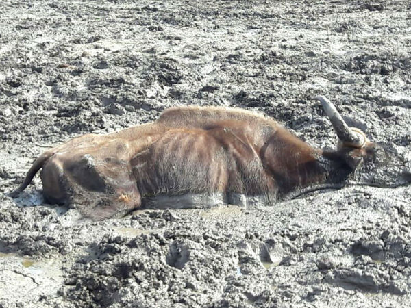 ಬಂಡೀಪುರ ರಾಷ್ಟ್ರೀಯ ಉದ್ಯಾನ ವ್ಯಾಪ್ತಿಯಲ್ಲಿ ಕೆರೆಗೆ ನೀರು ಕುಡಿಯಲು ಬಂದ ಕಾಟಿಯೊಂದು ಕೆರೆಯ ಹೂಳಿನಲ್ಲಿ ಸಿಕ್ಕಿಕೊಂಡಿದೆ. ಗ್ರಾಮಸ್ಥರ ಸಹಾಯದಿಂದ ಅರಣ್ಯ ಇಲಾಖೆ ಸಿಬ್ಬಂದಿ ಅದನ್ನು ರಕ್ಷಿಸಿದ್ದಾರೆ