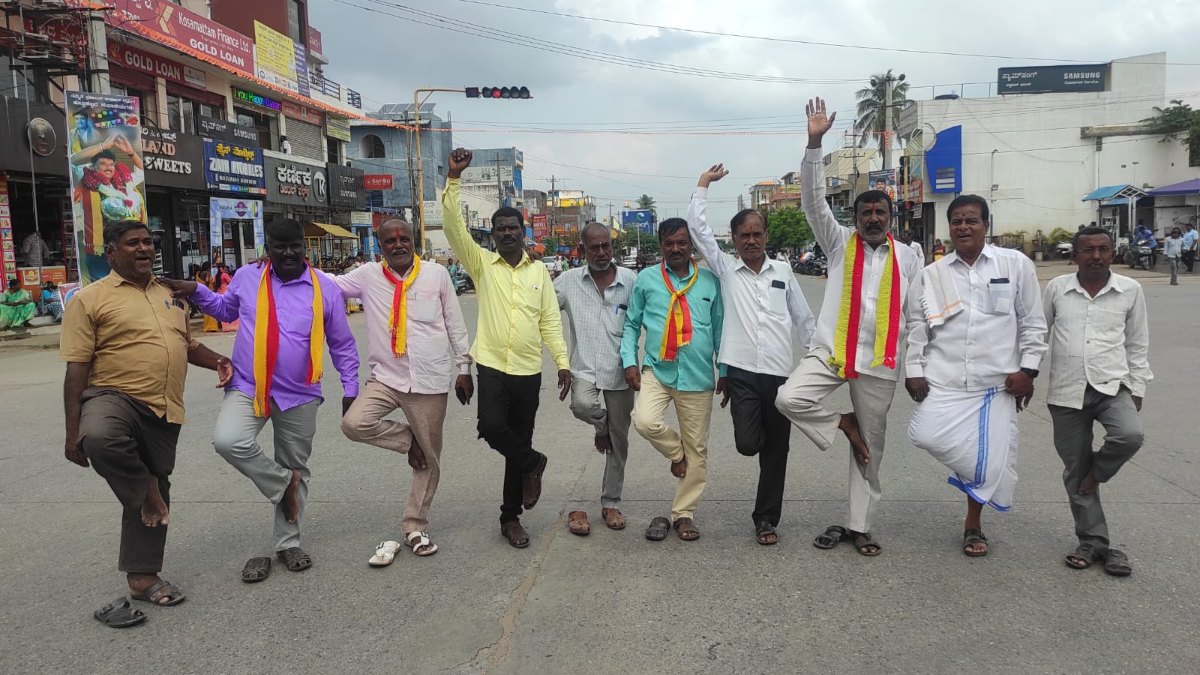 ನಗರದ ಜೆ.ಸಿ.ವೃತ್ತದಲ್ಲಿ ಜಮಾಯಿಸಿದ್ದ ಚಳವಳಿಗಾರರು, ಕಪ್ಪು ಬಾವುಟ ಪ್ರದರ್ಶನ ಮಾಡಿ ಸರ್ಕಾರದ ವಿರುದ್ಧ ಆಕ್ರೋಶ ವ್ಯಕ್ತಪಡಿಸಿದ್ದರು. ಬಳಿಕ ನಗರದ ಸರ್ ಎಂ.ವಿ. ಪ್ರತಿಮೆ ಎದುರು ಜಿಲ್ಲಾ ರೈತ ಹಿತರಕ್ಷಣಾ ಸಮಿತಿ ಜೊತೆಗೂಡಿದ ರೈತ, ದಲಿತ, ಪ್ರಗತಿಪರ ಹಾಗೂ ಕನ್ನಡ ಪರ ಸಂಘಟನೆ ಕಾರ್ಯಕರ್ತರು ಧರಣಿ ಸತ್ಯಾಗ್ರಹ ಮುಂದುವರೆಸಿದ್ದರು.