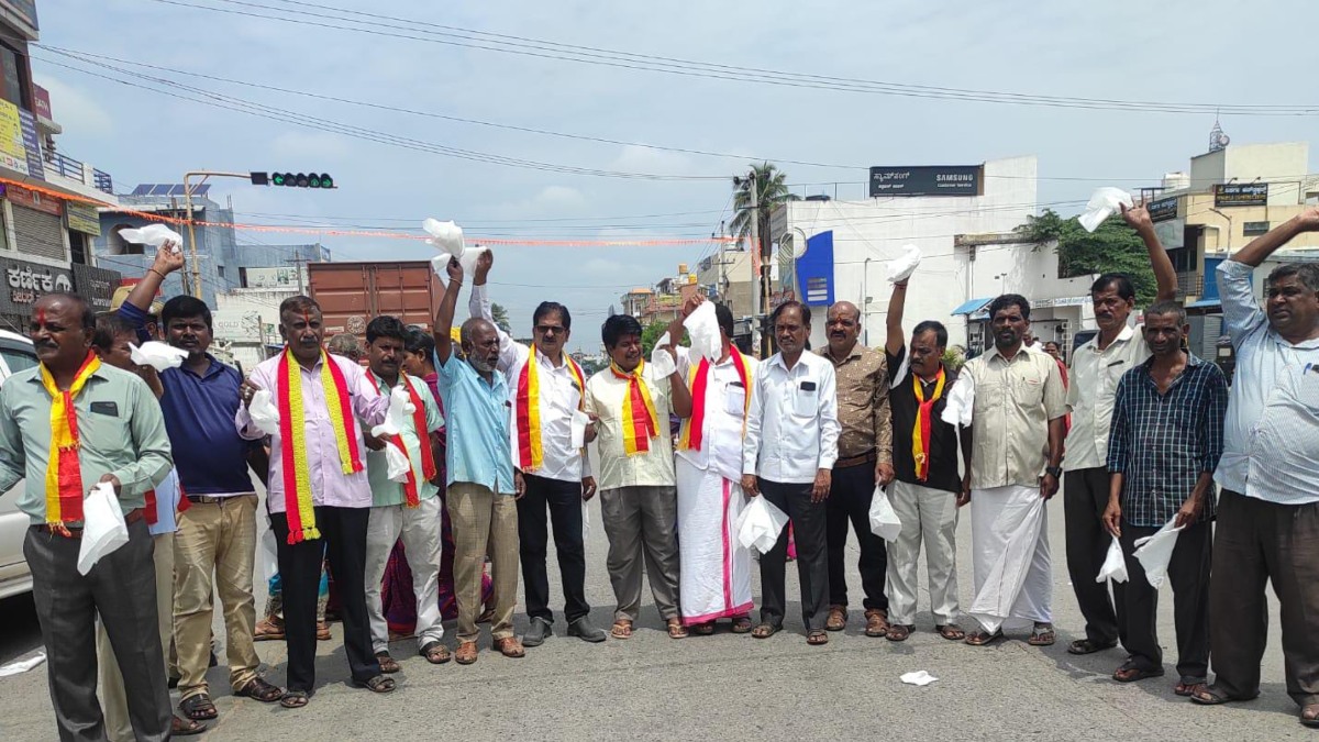ಕಾವೇರಿ ನೀರನ್ನು ತಮಿಳುನಾಡಿನ 3 ಬೆಳೆಗೆ ಹರಿಸಲಾಗುತ್ತಿದೆ. ಆದರೆ, ನಮ್ಮಲ್ಲಿ ಕುಡಿಯಲು ನೀರಿಲ್ಲ, ತರಕಾರಿ ಬೆಳೆಗಳು ಒಣಗುತ್ತಿವೆ. ನಮ್ಮ ರೈತರು, ಜನರು ಈಗಾಗಲೇ ಸಂಕಷ್ಟಕ್ಕೆ ಸಿಲುಕಿದ್ದಾರೆ. ಇದೇ ರೀತಿ ನೀರು ಹರಿಸಿದರೆ ಮುಂದೆ ಟಿಶ್ಯೂ ಪೇಪರ್ನ್ನೇ ಬಳಸಬೇಕಾಗುತ್ತದೆ. ಮುಖ ತೊಳೆಯಲೂ ನೀರಿರಲ್ಲ ಎಂದು ಟಿಶ್ಯೂ ಪೇಪರ್ ಹಿಡಿದು ಘೋಷಣೆಗಳನ್ನು ಕೂಗಿ ಆಕ್ರೋಶ ಹೊರಹಾಕಿದರು.
