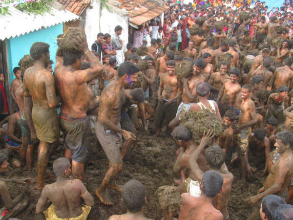 ಸೆಗಣಿ ಎರಚಾಡಲೆಂದೇ ಗ್ರಾಮದ ಯುವಕರು ಸಗಣಿಯನ್ನು ಉಂಡೆ ಮಾಡಿಕೊಂಡು ತಯಾರಾಗಿ ನಿಲ್ಲುತ್ತಾರೆ. ಪೂಜೆ ಮುಗಿಯುತ್ತಿದ್ದಂತೆಯೇ ಸೆಗಣಿ ಎರಚಾಟ ಆರಂಭವಾಗುತ್ತದೆ. ಒಬ್ಬರಿಗೊಬ್ಬರು ಸೆಗಣಿಯಲ್ಲಿ ಹೊಡೆದಾಡಿ, ಬಡಿದಾಡಿ, ಉರುಳಾಡಿ ಸಂತೋಷ ಪಡುತ್ತಾರೆ.
