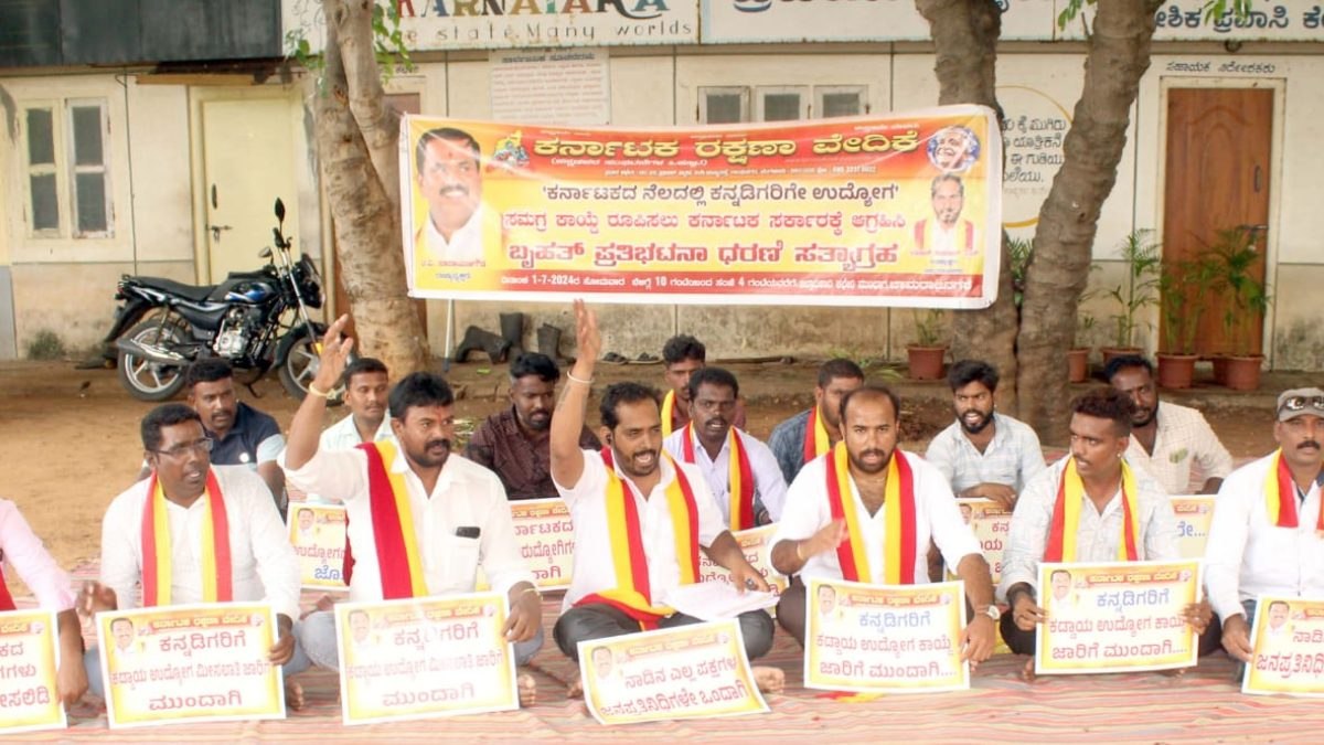ಈ ವೇಳೆ ಜಿಲ್ಲಾಧ್ಯಕ್ಷ ನವೀನ್ಕುಮಾರ್ ಮಾತನಾಡಿ, ಕೈಗಾರಿಕಾ ಉದ್ಯೋಗ ಸ್ಥಾಯಿ ಆದೇಶ ಕಾಯ್ದೆ 1946ರ ಅನ್ವಯ ರಾಜ್ಯ ಸರ್ಕಾರ ಬಿಲಿಷ್ಠವಾದ ಕಾನೂನು ರೂಪಿಸಿ ಕನ್ನಡಿಗರಿಗೆ ಉದ್ಯೋಗ ಮೀಸಲಾತಿ ಒದಗಿಸಬೇಕು. ಎಲ್ಲಾ ಖಾಸಗಿ ಸಂಸ್ಥೆಗಳಲ್ಲಿ ಸಿ ಮತ್ತು ಡಿ.ದರ್ಜೆಯ ಶೇಕಡ 100ರಷ್ಠು ಹುದ್ದೆಗಳು ಕನ್ನಡಿಗರಿಗೆ ಮೀಸಲಿಡಬೇಕು. ಎಲ್ಲ ಖಾಸಗಿ ಸಂಸ್ಥೆಗಳ ಇತರ ಹುದ್ದೆಗಳಲ್ಲಿ ಶೇಕಡ 80ರಷ್ಠು ಹುದ್ದೆಗಳನ್ನು ಕನ್ನಡಿಗರಿಗೆ ಮೀಸಲಿಡಬೇಕು ಎಂದು ಆಗ್ರಹಿಸಿದರು.