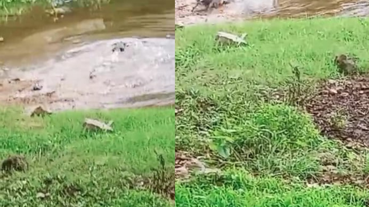 ಗ್ರಾಮ ಸಂಪರ್ಕಿಸಲು ನಿರ್ಮಿಸಿರುವ ಸೇತುವೆ ಸಮೀಪದ ನದಿ ತಟದಲ್ಲಿ ಮೊಸಳೆ ಪರಿವಾಳವನ್ನು ಹಿಡಿದು ಎಳೆದೊಯ್ದ ಘಟನೆ ನಡೆದಿದೆ. ಈ ದೃಶ್ಯವನ್ನು ಗ್ರಾಮದ ಯುವಕ ಅರುಣ್ ಎಂಬಾತ ಸೆರೆ ಹಿಡಿದಿದ್ದು, ಭಾರೀ ವೈರಲ್ ಆಗುತ್ತಿದೆ.