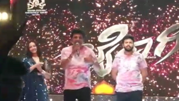 ಚಾಮರಾಜನಗರ, ಜೂನ್ 26: ನಗರದ ಡಾ.ಬಿ.ಆರ್.ಅಂಬೇಡ್ಕರ್ ಕ್ರೀಡಾಂಗಣದಲ್ಲಿ ಶನಿವಾರ ಬೈರಾಗಿ ಪ್ರೀ ರಿಲೀಸ್ ಈವೆಂಟ್ ನಡೆಯಿತು. ಈ ಕಾರ್ಯಕ್ರಮದಲ್ಲಿ ಹ್ಯಾಟ್ರಿಕ್ ಹೀರೋ ಶಿವರಾಜ್ ಕುಮಾರ್, ಡಾಲಿ ಧನಂಜಯ್ಗೆ ಭರ್ಜರಿ ಸ್ವಾಗತ ನೀಡಲಾಗಿತ್ತು. ಆದರೆ ಕಾರ್ಯಕ್ರಮ ಆರಂಭದಿಂದಲೂ ಯುವಕನೊಬ್ಬ ಪದೇ ಪದೇ ಅಪ್ಪು-ಅಪ್ಪು ಎಂದು ಕೂಗುತ್ತಿದ್ದ ವೇಳೇ ಗರಂ ಆದ ಶಿವಣ್ಣ ಅಭಿಮಾನ ಮನಸ್ಸಿನಲ್ಲಿರಲಿ, ಬರಿ ಬಾಯಲ್ಲಲ್ಲ ಎಂದು ಬುದ್ದಿಮಾತು ಹೇಳಿದರು.