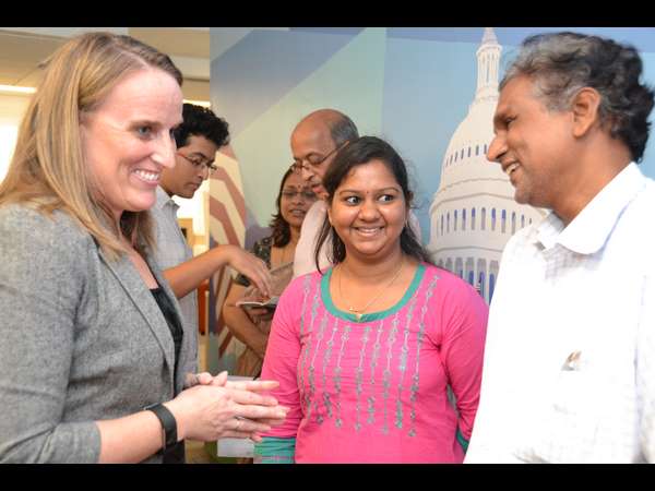 ಭಾರತ ಅಮೆರಿಕ ನಡುವಿನ ಶೈಕ್ಷಣಿಕ ಸಂಬಂಧವನ್ನು ಸಂಭ್ರಮಿಸಲು ಪ್ರತಿವರ್ಷ ಜೂನ್ ತಿಂಗಳಲ್ಲಿ 'ಸ್ಟೂಡೆಂಟ್ ವೀಸಾ ಡೇ' ಆಚರಿಸಲಾಗುತ್ತದೆ. ಚೆನ್ನೈನ ಅಮೆರಿಕನ್ ಸೆಂಟರ್ ನಲ್ಲಿ ಗುರುವಾರ ನಡೆದ ಸ್ಟೂಡೆಂಟ್ ವೀಸಾ ಡೇಯಲ್ಲಿ ಭಾಗವಹಿಸಿದ್ದ ವಿದ್ಯಾರ್ಥಿಗಳು ಮತ್ತು ಪೋಷಕರೊಂದಿಗೆ ಸಂವಾದ ನಡೆಸುತ್ತಿರುವ ಚೆನ್ನೈ ದೂತಾವಾಸ ಕಚೇರಿಯ ಆಕ್ಟಿಂಗ್ ಕೌನ್ಸಲ್ ಜನರಲ್ ಡೆಬಿ ರಾಬಿನ್ಸನ್.(PHOTO CREDIT: U.S. Consulate General Chennai)