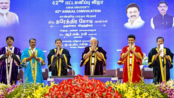 ಚೆನ್ನೈನಲ್ಲಿ ಅಣ್ಣಾ ವಿಶ್ವವಿದ್ಯಾನಿಲಯದ 42ನೇ ಘಟಿಕೋತ್ಸವವನ್ನು ಉದ್ದೇಶಿಸಿ ಮಾತನಾಡಿ, ನೀವು ಈಗಾಗಲೇ ನಿಮ್ಮ ಮನಸ್ಸಿನಲ್ಲಿ ನಿಮಗಾಗಿ ಭವಿಷ್ಯಕ್ಕಾಗಿ ಕನಸನ್ನು ಕಟ್ಟುಕೊಂಡಿದ್ದೀರಿ. ಆದ್ದರಿಂದ ಇಂದು ಆಕಾಂಕ್ಷೆಗಳ ದಿನವಾಗಿದೆ. ಈ ಸಮಯದಲ್ಲಿ ನಮ್ಮ ಯುವಕರ ಎಲ್ಲಾ ಕನಸುಗಳು ನನಸಾಗುತ್ತವೆ. ಇದು ಬೋಧಕ ಸಿಬ್ಬಂದಿ, ಬೋಧಕೇತರ ಸಿಬ್ಬಂದಿ ಮತ್ತು ಸಿಬ್ಬಂದಿ ಬೆಂಬಲಕ್ಕಾಗಿ ಇದೆ. ನೀವು ರಾಷ್ಟ್ರ ನಿರ್ಮಾತೃಗಳು. ವಿದ್ಯಾರ್ಥಿಗಳ ಸಾಧನೆಗೆ ಪೋಷಕರ ತ್ಯಾಗ ಬಹುಮುಖ್ಯವಾಗಿದೆ ಎಂದು ಪ್ರಧಾನಿ ಹೇಳಿದರು.
