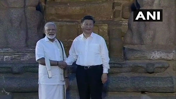 ತಮಿಳುನಾಡಿನ ಸಾಂಪ್ರದಾಯಿಕ ಉಡುಗೆ ಬಿಳಿ ಪಂಚೆ, ಶರ್ಟ್ ಮತ್ತು ಶಲ್ಯ ಧರಿಸಿದ್ದ ಪ್ರಧಾನಿ ಮೋದಿ ಹಾಗೂ ಕ್ಸಿ ಜಿನ್ಪಿಂಗ್ ಮಹಾಬಲಿಪುರಂ ದೇಗುಲವನ್ನು ಸುತ್ತು ಹಾಕಿ ಅಲ್ಲಿನ ವಾಸ್ತುಶಿಲ್ಪ ಕಂಡರು. ನರೇಂದ್ರ ಮೋದಿಯವರು ಜಿನ್ಪಿಂಗ್ಗೆ ವಿವರಣೆ ನೀಡಿದರು.