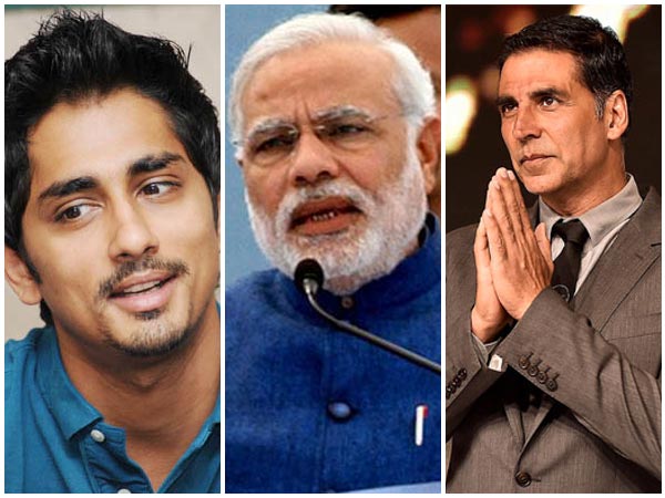ಪ್ರಧಾನಿ ಮೋದಿ ಅವರು ನಟ ಅಕ್ಷಯ್ ಕುಮಾರ್ ಅವರ ಜತೆ ರಾಜಕೀಯೇತರ ಮಾತುಕತೆ ನಡೆಸಿದ್ದರ ಬಗ್ಗೆ ನಟ ಸಿದ್ದಾರ್ಥ್ ಅವರು ಈ ಹಿಂದೆ ಕೂಡಾ ಟ್ವೀಟ್ ಮಾಡಿದ್ದರು. ಸಂದರ್ಶಕ ಅಕ್ಷಯ್ ಅವರ ಬಗ್ಗೆ ಪ್ರತಿಕ್ರಿಯಿಸಿ ಅಕ್ಷಯ್ ಕುಮಾರ್ ಅವರು ಓರ್ವ ಖಳನಾಯಕರಂತಾಗಿ ತುಂಬಾ ಕೆಳಮಟ್ಟದಲ್ಲಿದ್ದಾರೆ ಎಂದು ಟ್ವೀಟ್ ಮಾಡಿದ್ದಾರೆ.