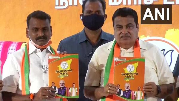 ಕೇಂದ್ರ ಸಚಿವ ನಿತಿನ್ ಗಡ್ಕರಿ ಹಾಗೂ ವಿ.ಕೆ. ಸಿಂಗ್ ಅವರು ಚೆನ್ನೈನಲ್ಲಿನ ತಮ್ಮ ಪಕ್ಷದ ಕಚೇರಿಯಲ್ಲಿ ಪ್ರಣಾಳಿಕೆ ಬಿಡುಗಡೆ ಮಾಡಿದ್ದಾರೆ. ಜೊತೆಗೆ ಗಡ್ಕರಿ ಅವರು, ಈ ವಿಧಾನಸಭೆ ಚುನಾವಣೆಯಲ್ಲಿ ಎನ್ಡಿಎ ಗೆದ್ದೇ ಗೆಲ್ಲುತ್ತದೆ ಎಂಬ ಭರವಸೆಯನ್ನೂ ವ್ಯಕ್ತಪಡಿಸಿದ್ದಾರೆ. "ತಮಿಳುನಾಡಿನಲ್ಲಿ ಎನ್ಡಿಗೆ ಬಹುಮತ ಸಿಗುವ ಭರವಸೆಯಿದೆ. ತಮಿಳುನಾಡು ಅಭಿವೃದ್ಧಿ ಹೊಂದಿದ ರಾಜ್ಯವಾಗಿ ಬೆಳೆಯಲಿದೆ" ಎಂದು ಹೇಳಿದ್ದಾರೆ.