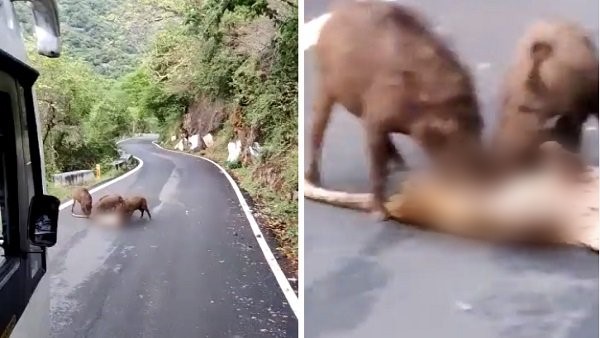 ನಡುರಸ್ತೆಯಲ್ಲಿ ನಡೆದ ಈ ಭಯಾನಕ ದೃಶ್ಯವನ್ನು ಕಾರಿನಲ್ಲಿದ್ದ ವ್ಯಕ್ತಿಯೊಬ್ಬ ವಿಡಿಯೋ ಮಾಡಿದ್ದಾನೆ. ಕಾಡುಹಂದಿಗಳು ಚಿರತೆಯನ್ನು ತಿನ್ನಲು ಯತ್ನಿಸುತ್ತಿರುವ ರೀತಿ ನೋಡಿದರೆ ಆ ಚಿರತೆ ಬದುಕಿರಲು ಸಾಧ್ಯವಿಲ್ಲ ಎಂದು ಭಾವಿಸಬಹುದು.