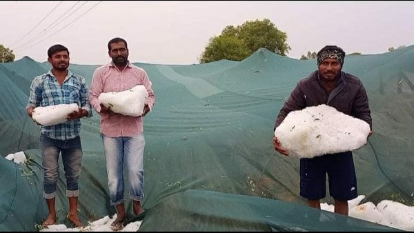 ಚಿಕ್ಕಬಳ್ಳಾಪುರ: ಆನೆ ಗಾತ್ರದ ಆಲಿಕಲ್ಲು ಮಳೆಗೆ ನೆಲಕ್ಕುರುಳಿದ ಪಾಲಿಹೌಸ್!