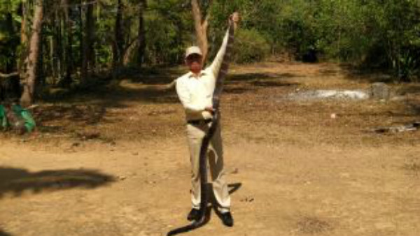 ಚಿಕ್ಕಮಗಳೂರು, ಜನವರಿ 30: ದನದ ಕೊಟ್ಟಿಗೆಯಲ್ಲಿದ್ದ ಹತ್ತು ಅಡಿ ಉದ್ದದ ಕಾಳಿಂಗ ಸರ್ಪವನ್ನು ಉರುಗ ತಜ್ಞ ಕುದುರೆಗುಂಡಿ ಹರೀಂದ್ರ ಇಂದು ಸೆರೆ ಹಿಡಿದಿದ್ದಾರೆ.