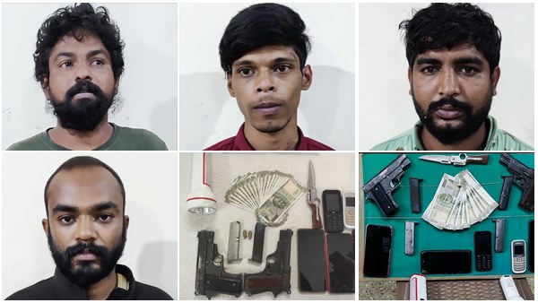 "ಕೆಲ ವಾಹನಗಳನ್ನು ಅಡ್ಡಗಟ್ಟಿದಾಗ ಅವರು ನಿಲ್ಲಿಸದೆ ಪೊಲೀಸರಿಗೆ ಕರೆ ಮಾಡಿ ಮಾಹಿತಿ ನೀಡಿದ್ದಾರೆ. ಕೂಡಲೇ ಕಾರ್ಯಪ್ರವೃತ್ತರಾದ ಪೊಲೀಸರು ದರೋಡೆಕೋರರ ಜಾಡುಹಿಡಿದು ಹೆದ್ದಾರಿಯಲ್ಲಿ ಮುದ್ರೆಮನೆಯವರೆಗೂ ತೆರಳಿದಾಗ ಸಾರ್ವಜನಿಕರ ವಾಹನವೆಂದು ತಿಳಿದ ದರೋಡೆಕೋರರು ಕತ್ತಲೆಯಲ್ಲಿ ಪೊಲೀಸರ ಜೀಪನ್ನು ತಡೆದಿದ್ದಾರೆ. ಈ ವೇಳೆ ಸಿನಿಮೀಯ ಮಾದರಿಯಲ್ಲಿ ದಾಳಿ ನಡೆಸಿ ನಾಲ್ವರನ್ನು ವಶಕ್ಕೆ ಪಡೆದಿದ್ದಾರೆ. ಓರ್ವ ಆರೋಪಿ ಕತ್ತಲೆಯಲ್ಲಿ ಕಾಡಿನೊಳಕ್ಕೆ ಓಡಿ ತಪ್ಪಿಸಿಕೊಂಡಿದ್ದಾನೆ,'' ಎಂದು ತಿಳಿಸಿದರು.