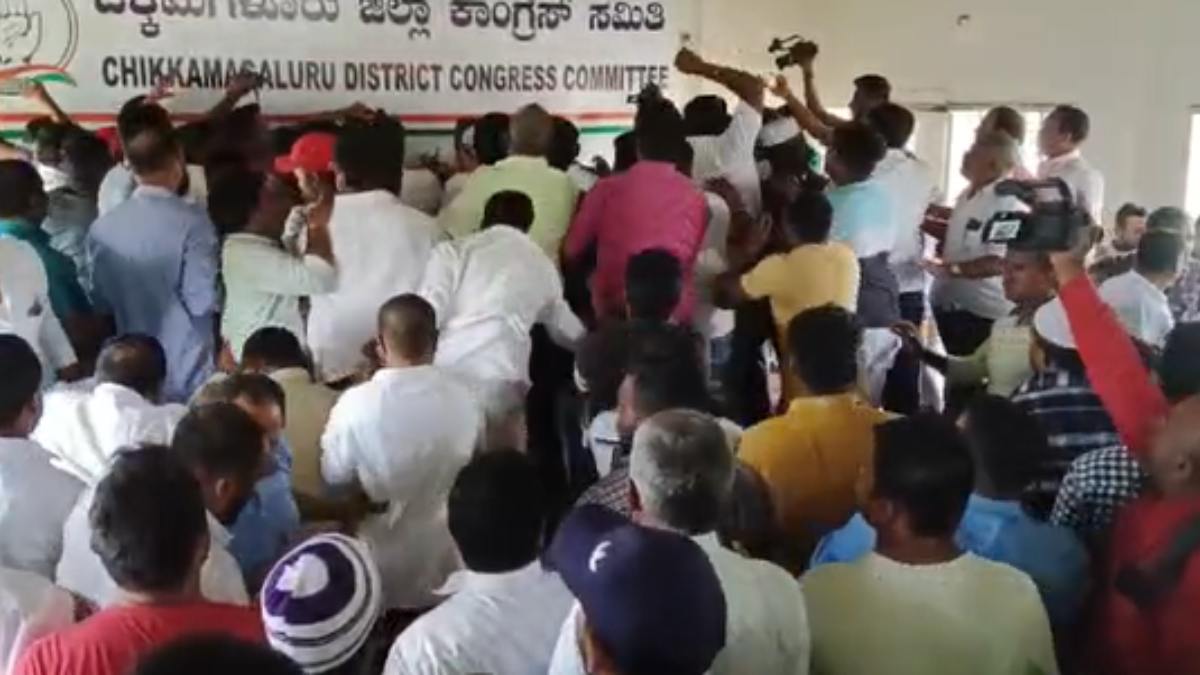 ಟಿಕೆಟ್ ಗೊಂದಲ: ಚಿಕ್ಕಮಗಳೂರು ಕಾಂಗ್ರೆಸ್ ಕಚೇರಿಯಲ್ಲಿ ಕಾರ್ಯಕರ್ತರ ರಂಪಾಟ