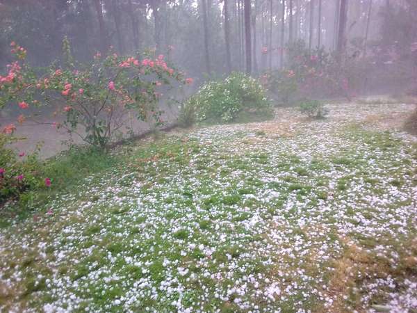 ಸುಮಾರು ಒಂದು ಗಂಟೆಯ ಕಾಲ ಭಾರೀ ಮಳೆ ಸುರಿದ ಪರಿಣಾಮ ಮನೆಯ ಆವರಣದ ತುಂಬಾ ಮಲ್ಲಿಗೆ ಹೂ ಬಿದ್ದಂತೆ ಆಲಿಕಲ್ಲು ಬಿದ್ದಿದೆ. ಮಲೆನಾಡಿನ ಜನ ಆ ಆಲಿಕಲ್ಲುಗಳನ್ನ ಪಾತ್ರೆ-ಲೋಟಗಳಲ್ಲಿ ತುಂಬಿ ಖುಷಿ ಪಟ್ಟರು. ಅಷ್ಟೇ ಅಲ್ಲ, ಆ 20 ಕೆ.ಜಿಯ ಆಲಿಕಲ್ಲನ್ನು ಹಿಡಿದು ಫೋಟೋ ಹೊಡೆದು ಸಂಭ್ರಮಿಸಿದರು.