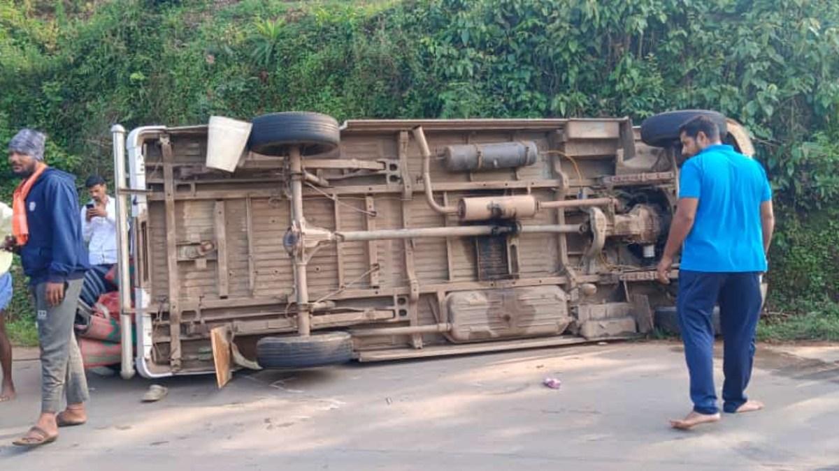 ಮೂಡಿಗೆರೆ: ಚಾಲಕನ ನಿಯಂತ್ರಣ ತಪ್ಪಿ ಟಿಟಿ ವಾಹನ ಪಲ್ಟಿ, 15 ಜನರಿಗೆ ಗಾಯ