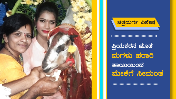 ಪ್ರೀತಿಯಿಂದ ಸಾಕಿ ಬೆಳೆಸಿದ ಮಗಳು ಪ್ರೀತಿಸಿದ ಹುಡುಗನ ಜೊತೆ ಓಡಿಹೋದ ಕಾರಣಕ್ಕೆ ತಾಯಿ ಮನೆಯಲ್ಲಿ ಬೆಳೆಸಿದ ಮೇಕೆಗೆ ಸೀಮಂತ ಕಾರ್ಯ ಮಾಡಿದ ವಿಶೇಷ ಘಟನೆ ಚಿತ್ರದುರ್ಗದಲ್ಲಿ ನಡೆದಿದೆ.
