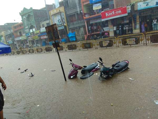 ರಸ್ತೆ ಬದಿಯಲ್ಲಿ ನಿಲ್ಲಿಸಿದ್ದ ದ್ವಿಚಕ್ರ ವಾಹನಗಳು ಹೆಚ್ಚೂಕಡಿಮೆ ಮುಳುಗಿವೆ. ಇತ್ತೀಚಿನ ವರ್ಷಗಳಲ್ಲಿ ಇಂಥ ಮಳೆಯನ್ನು ಕಂಡಿರದಿದ್ದ ಜನರು ಈ ವರ್ಷಧಾರೆಯನ್ನು ಸಂಭ್ರಮಿಸಿದರೆ, ಜನರು ಅಡ್ಡಾಡಲಾಗದೆ ಪರದಾಡುವಂತಾಗಿದೆ.