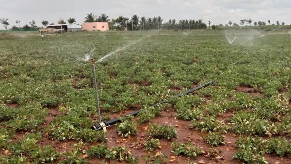 ಮಳೆ ಬಂದರೂ ಕೆಲವು ಬೆಳೆಗಳು ಚಿಗುರದೇ ಇರುವ ಮಟ್ಟಕ್ಕೆ ಬಂದು ನಿಂತಿವೆ. ಉಳಿದ ಬೆಳೆಗಳಿಗಾದರೂ ಮಳೆ ಬೇಕಾಗಿದೆ. ಪ್ರತಿನಿತ್ಯ ನೂರಾರು ರೈತರು ಮಳೆಗಾಗಿ ಮೋಡಗಳನ್ನು ಎದುರು ನೋಡುತ್ತಾ ಕಾಯುತ್ತಿದ್ದಾರೆ. ಇತ್ತ ರೈತನೊಬ್ಬ ಶೇಂಗಾ ಬೆಳೆಗೆ ನೀರು ಹಾಯಿಸಲು ಸ್ಪಿಂಕ್ಲರ್ ಮೊರೆ ಹೋಗಿದ್ದಾನೆ.