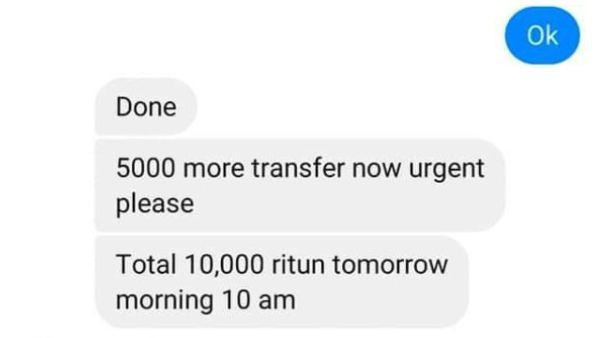 ತುರ್ತಾಗಿ ಹಣ ಬೇಕಾಗಿದೆ ಎಂದು ಹಣವನ್ನು ಪಡೆಯಲಾಗಿದೆ. ಇದು ತಿಳಿಯುಷ್ಟರಲ್ಲಿ ಸುಮಾರು 40 ರಿಂದ 50 ಸಾವಿರ ಹಣವನ್ನು ಸ್ನೇಹಿತರಿಂದ ಪಡೆಯಲಾಗಿದೆ. ಸ್ನೇಹಿತರು ಫೋನ್ ಮಾಡಿ ಕೇಳಿದಾಗಲೇ ಖಾತೆ ಹ್ಯಾಕ್ ಆಗಿರುವುದು ರಾಜಪ್ಪಗೆ ತಿಳಿದಿದೆ.
