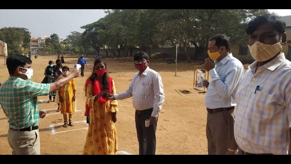 ಚಿತ್ರದುರ್ಗ, ಜನೆವರಿ 1: ಆರೋಗ್ಯ ಇಲಾಖೆ ನೀಡಿರುವ ಮಾರ್ಗಸೂಚಿಯಂತೆ ಇಂದಿನಿಂದ ರಾಜ್ಯಾದ್ಯಂತ ಶಾಲಾ-ಕಾಲೇಜುಗಳು ಆರಂಭವಾಗಿವೆ. 10 ತಿಂಗಳ ಬಳಿಕ ಬ್ಯಾಗ್ ಹಿಡಿದು ಮಕ್ಕಳು ವಿದ್ಯಾ ದೇಗುಲದತ್ತ ಹೆಜ್ಜೆ ಹಾಕಿದ್ದಾರೆ.